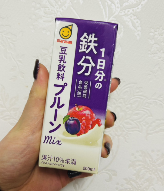 正直、豆乳って独特の風味が苦手な人も多いと思いますが、この「プルーンmix」はプルーン・りんご・ぶどう果汁がミックスされてて、さわやかで甘酸っぱい味わい!